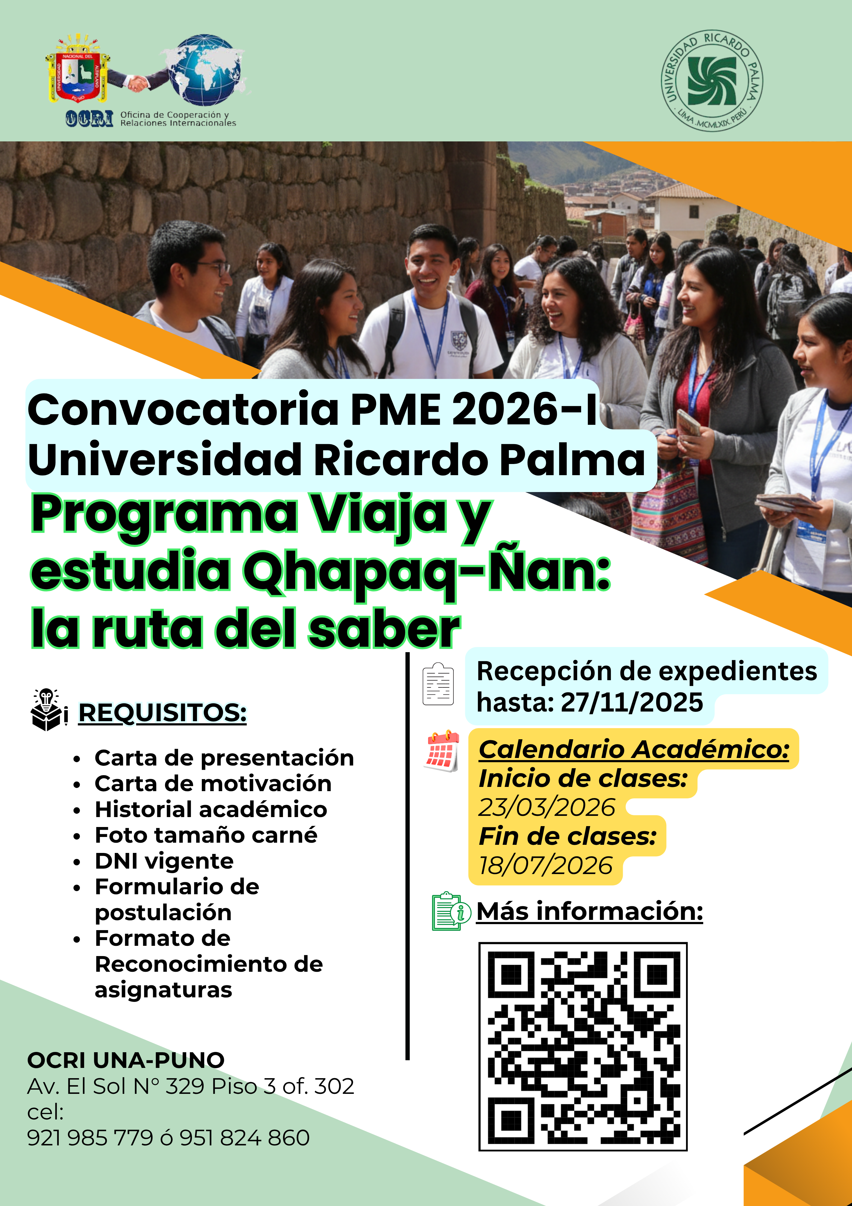 programa de Movilidad Nacional Viaja y estudia con el Qhapaq-Ñan: la ruta del saber 2026-I